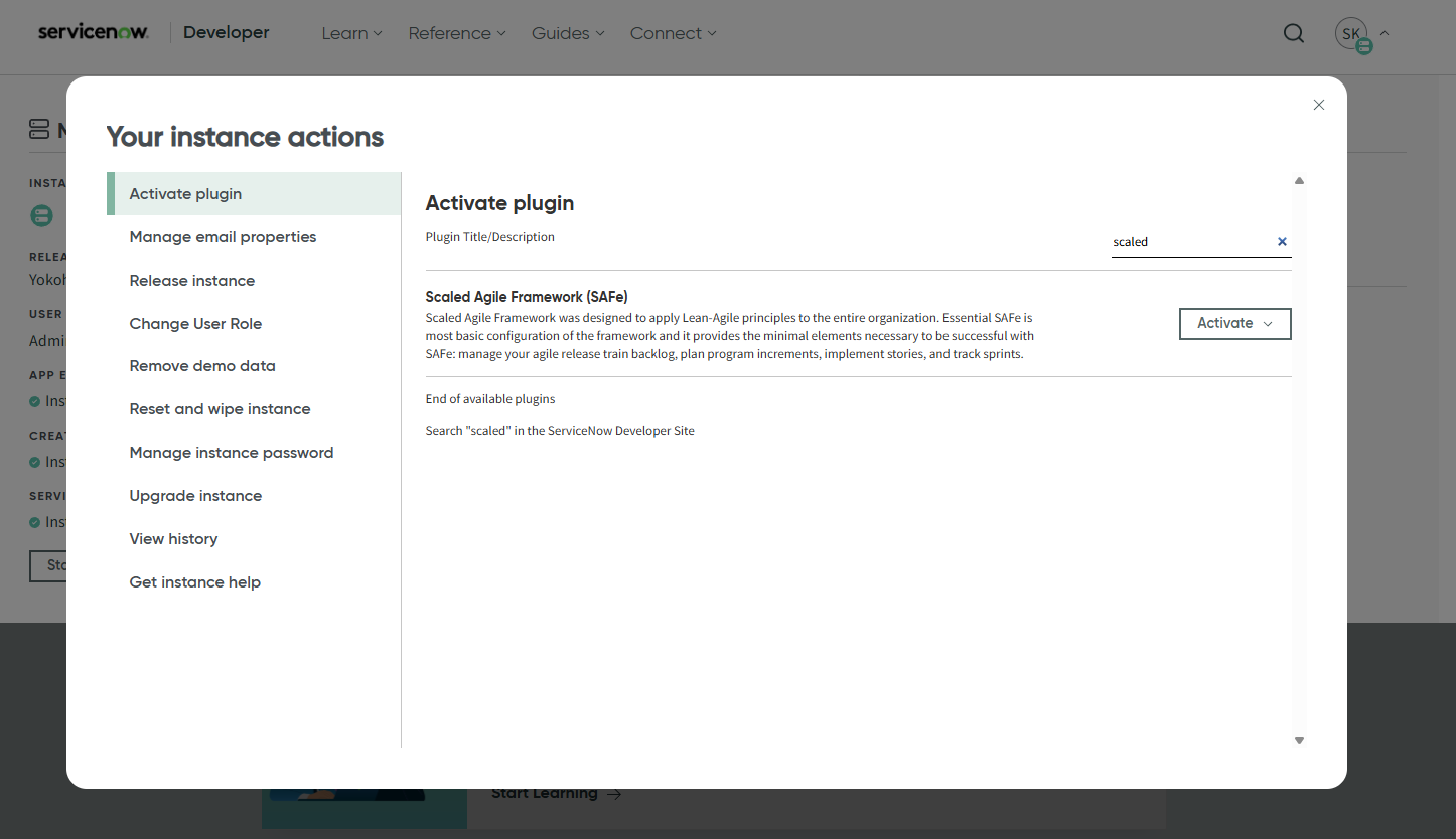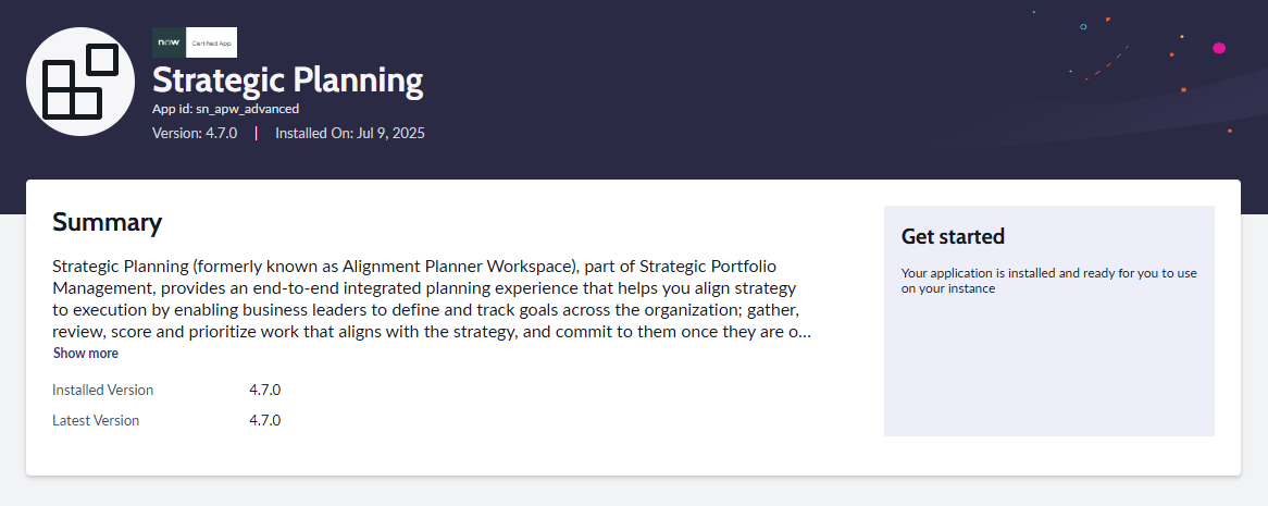 ServiceNow is continually evolving its Agile solution set. Recently, Enterprise Agile Planning was introduced within Strategic Planning App as an evolution of its agile management capabilities, which may eventually supersede the older SAFe plugin (All Menu > System Definition > Plugins).